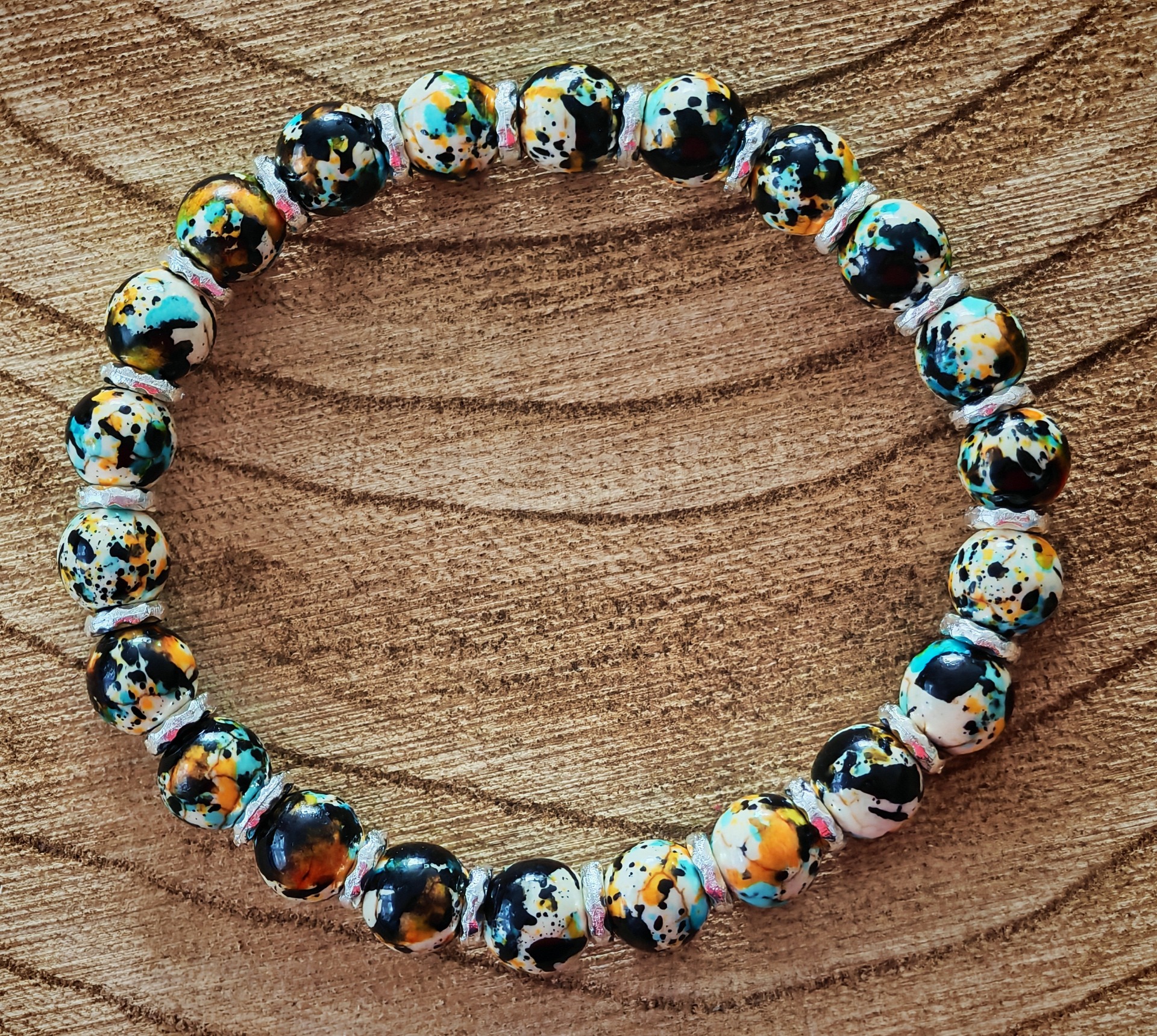 skleněné strakaté korálky - velikost náramku 15-16 cm